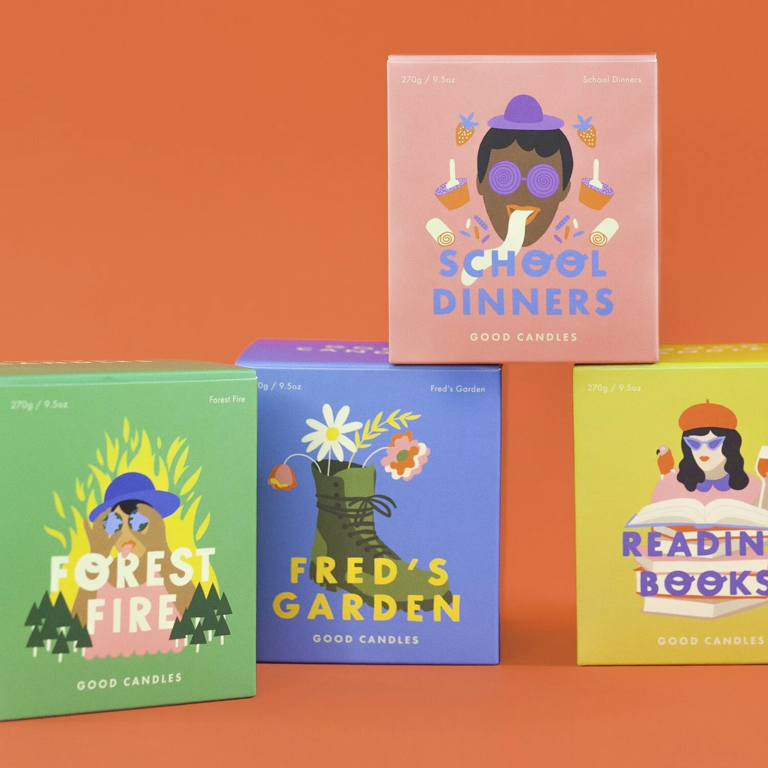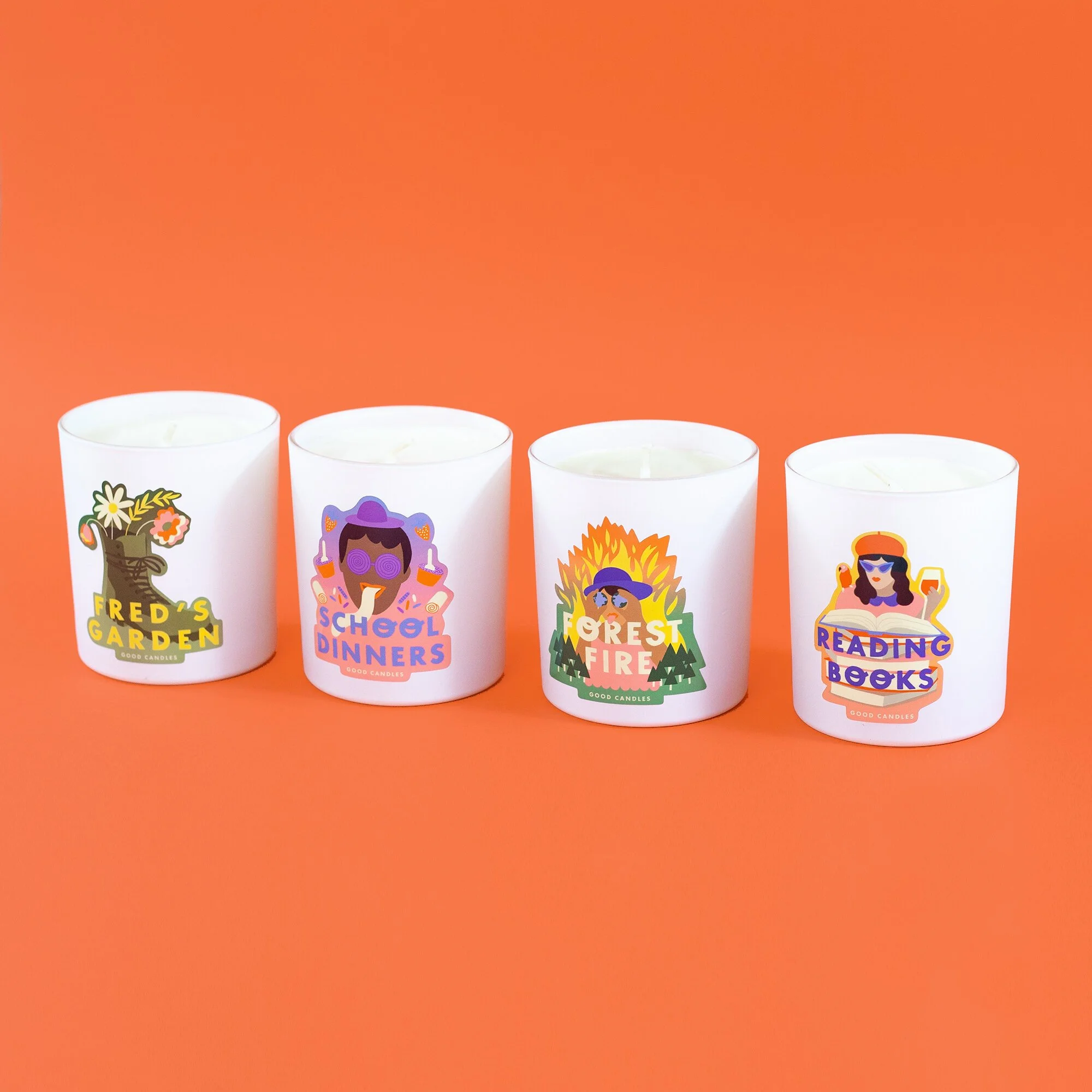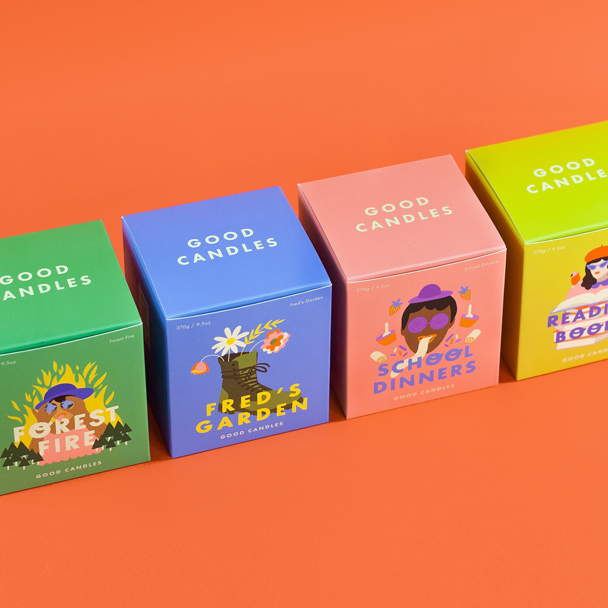 Olly created 4 candles to start with and for each candle sold, 10% of each sale is donated to a good cause. Each candle speaks out about a cause close to Olly’s heart. Forest Fire donates to @ecologi_hq , a company Olly co-founded which plant trees all around the world. School Dinners donates to @trusselltrust , which helps make sure no child goes hungry. Fred’s Garden donates to @calmzone which is a leading movement against suicide. Finally, Reading Books donates to the @literacy_trust , helping to develop literacy in the UK. Each candle is super joyful and smells amazing. They’re all so different and special.