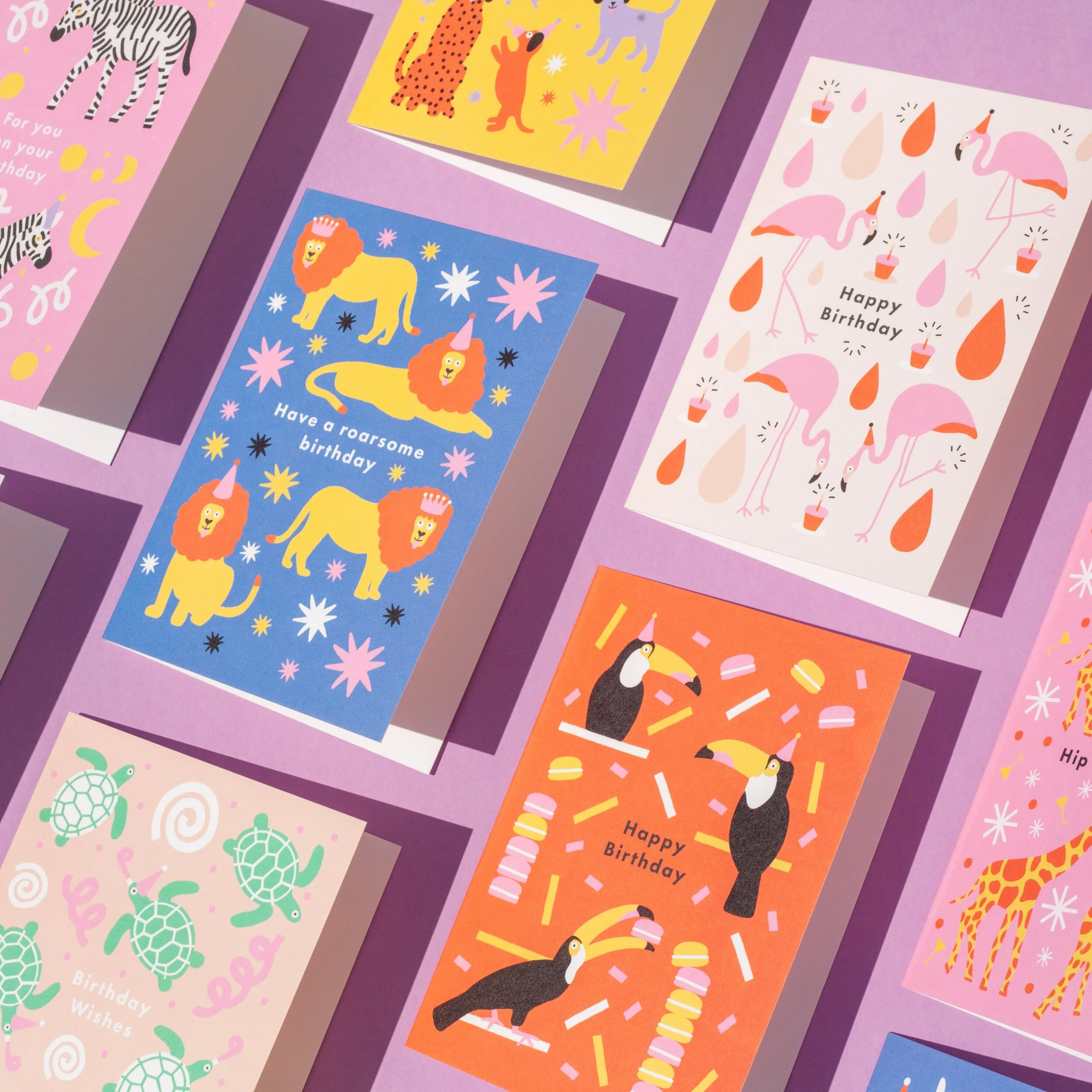 I illustrated a new collection of birthday greeting cards for independent shop Sadler Jones. These ones are all about fun animals helping you have a colourful and joyful time (on your birthday, of course). In case you were wondering, my favourite one is the Toucan card!